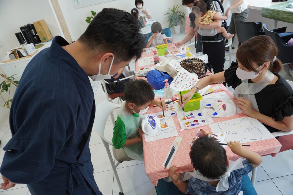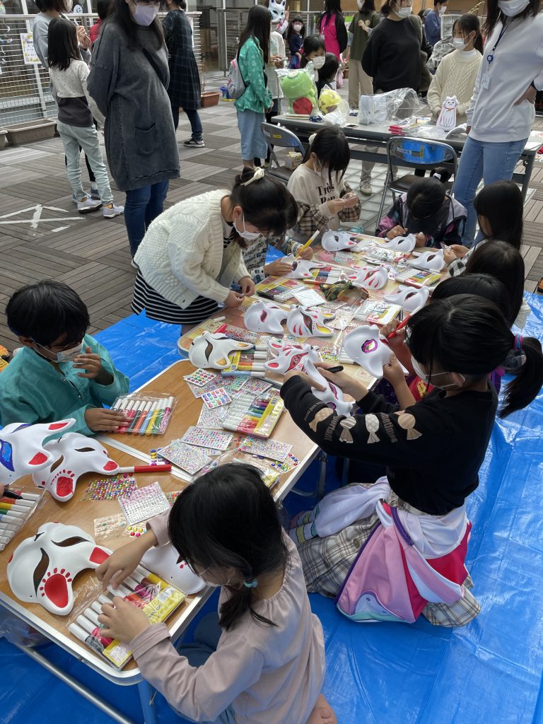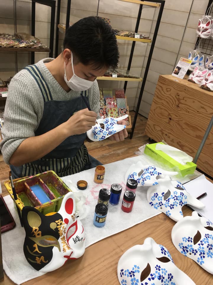 狐の半面の販売。または、絵付け体験イベントなどを行なっております。
